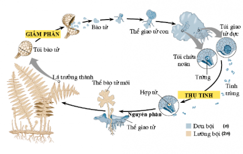 Hãy chú thích Hình 1 và vẽ sơ đồ vòng đời của dương xỉ thể hiện rõ sự xen kẽ giữa sinh sản vô tính và sinh sản hữu tính
