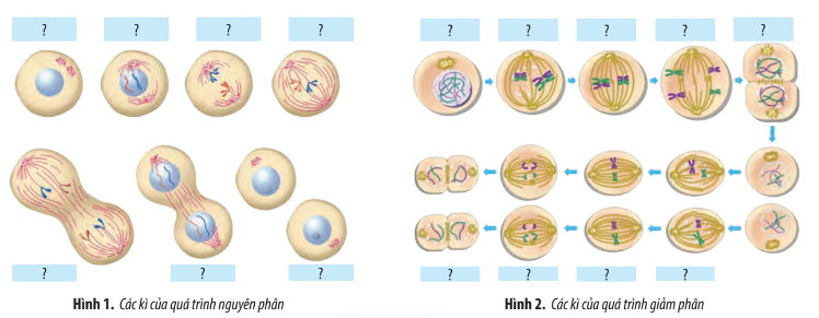 Quan sát Hình 1 và 2. Điền tên các kì thích hợp vào ô trống.