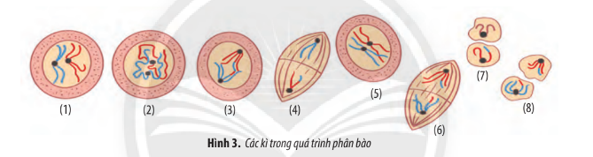 – Hình 1: Các kì của nguyên phân (từ trái qua phải):
