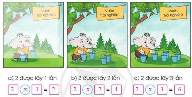 Nêu phép nhân thích hợp với mỗi tranh vẽ:
