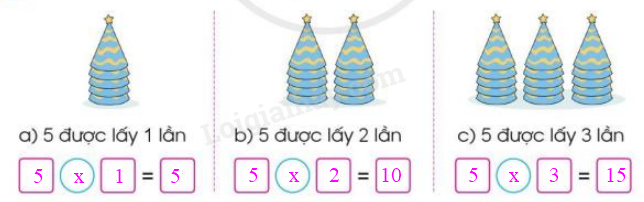 5 được lấy 1 lần. Ta có phép nhân 5 x 1 = 5