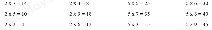Tính nhẩm kết quả dựa vào bảng nhân 2 và bảng nhân 5 đã học.
