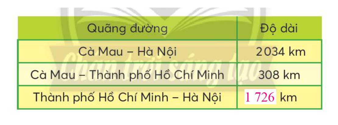 Quãng đường từ TP. Hồ Chí Minh đến Hà Nội = Quãng đường từ Cà Mau đến Hà Nội – Quãng đường từ Cà Mau đến TP. Hồ Chí Minh.