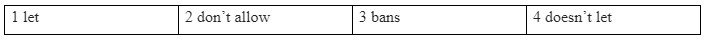 4 Our dad              TVs in our bedrooms. We always watch the TV downstairs together. (doesn’t allow/doesn’t let)