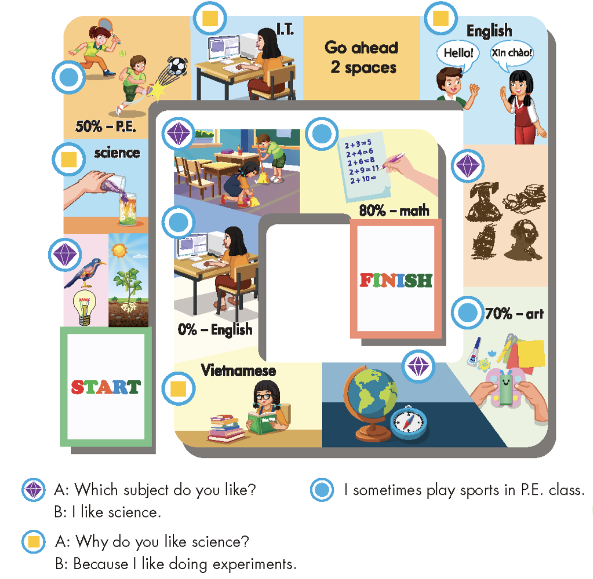 (Chơi trò chơi ô cờ.)