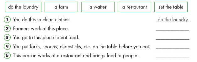 (Nhìn và đọc. Chọn những từ thích hợp và viết vào chỗ trống.)
