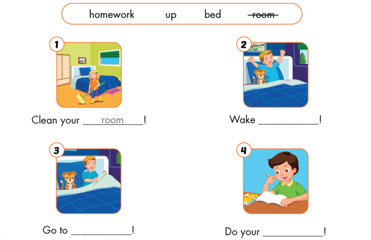 (Đọc câu. Chọn một từ từ cái hộp. Điền vào chỗ trống.)