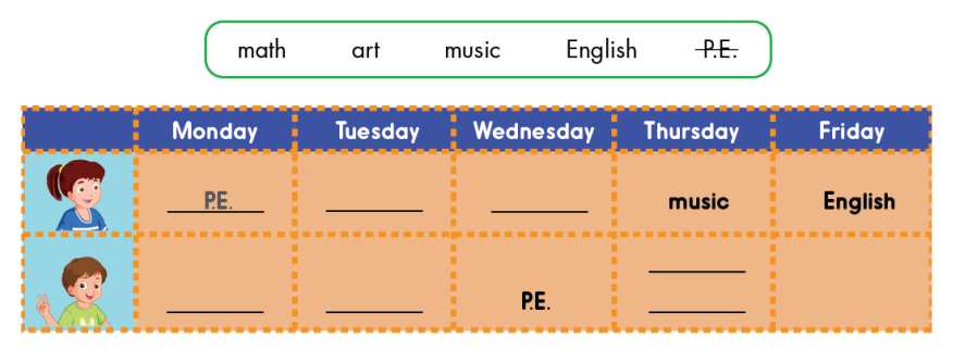 1. When do you have P.E? (Khi nào cậu có môn thể dục?)