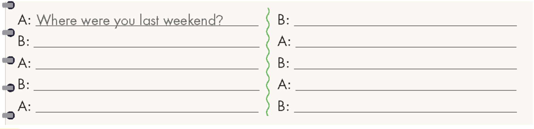 C. Write a short conversation between two friends talking about what they did last weekend.