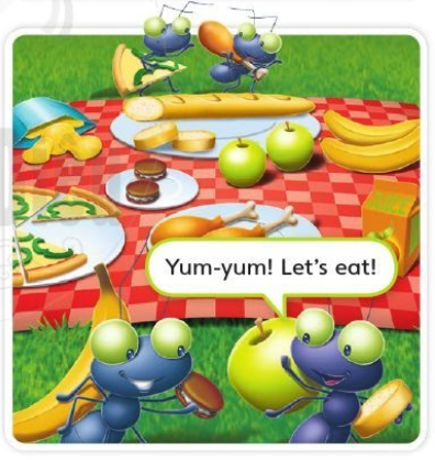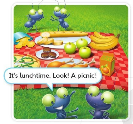 (Giờ ăn trưa đến rồi. Nhìn kìa! Một buổi dã ngoại!)