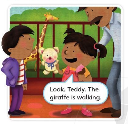 Tạm dịch: Nhìn kìa, Teddy. Con hươu cao cổ đang đi bộ.
