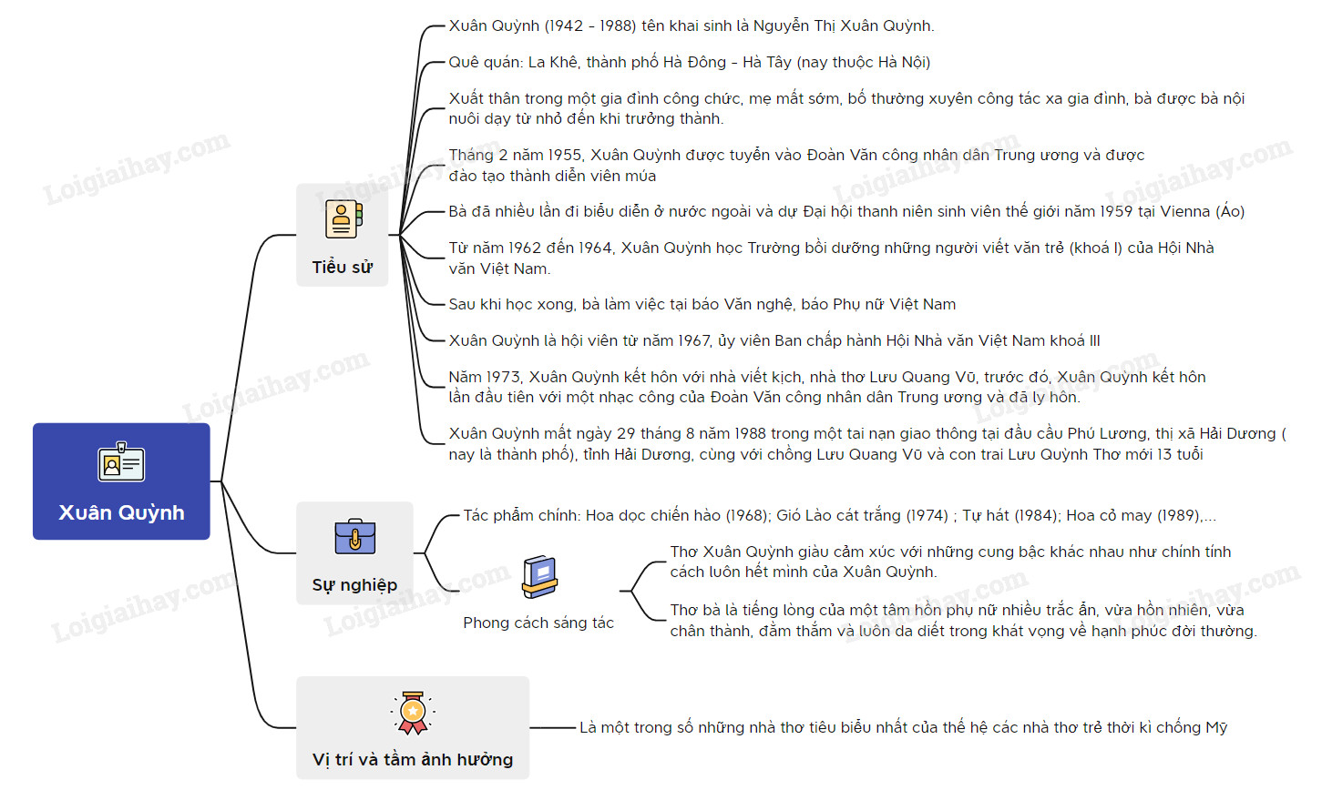 Sơ đồ tư duy về tác giả Xuân Quỳnh: