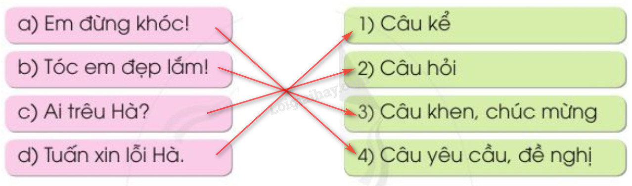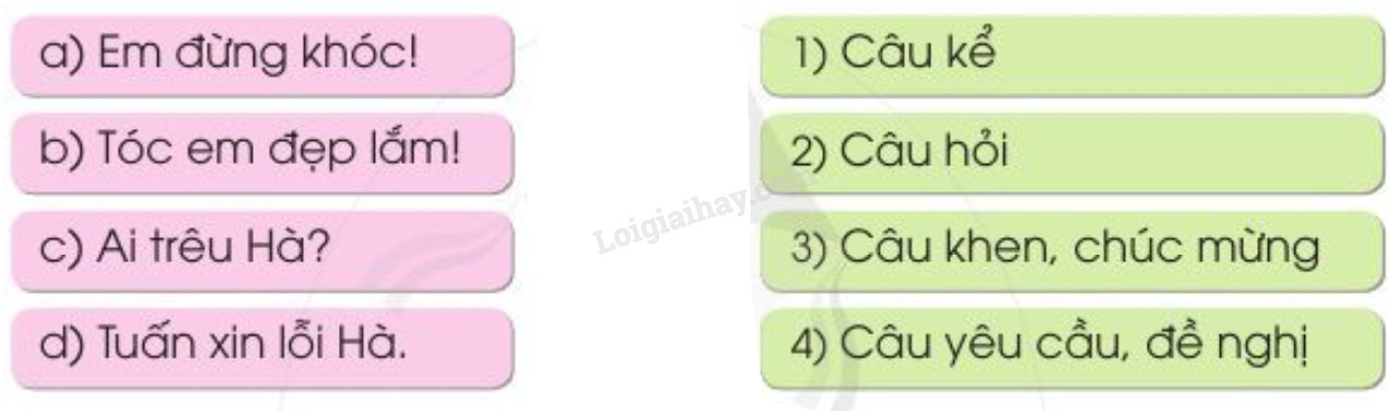 Câu 3: Nối mỗi câu sau với kiểu câu tương ứng