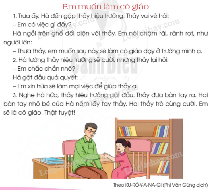 a. Hà xin gặp thầy hiệu trưởng để bày tỏ ước mơ sau này trở thành cô giáo của trường.