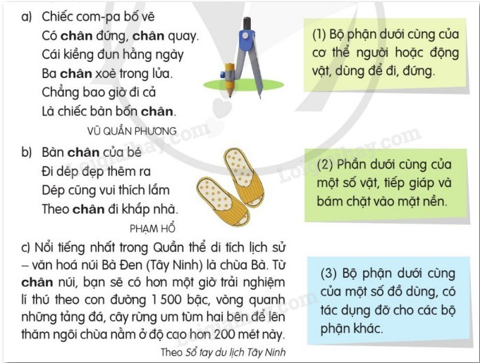 – Điểm khác: từ chân có thể dùng cho người, động vật hoặc đồ vật.