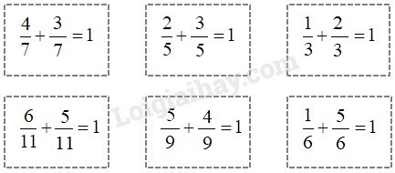 a) \(\dfrac{1}{3} + \dfrac{2}{3} = \dfrac{1+2}{{3}} = \dfrac{{3}}{{3}} = 1\)
