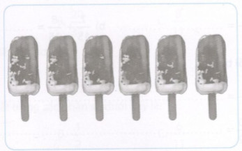 Mẹ mua cho cả nhà 6 que kem như nhau, chỉ khác nhau vị của kem. Có 1 que kem vani, 2 que kem sô-cô-la, 2 que kem đậu xanh và 1 que kem dâu tây.