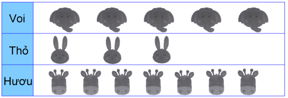 c) Số con hươu nhiều hơn số con voi là  2 con.
