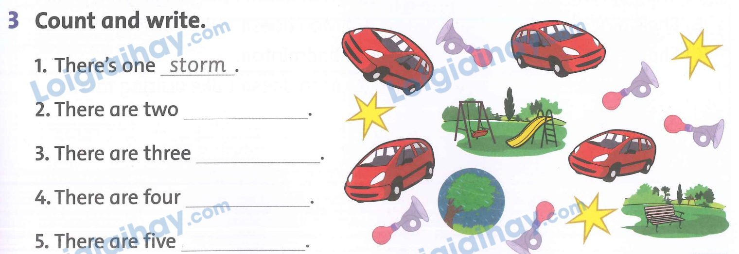 4. There are four cars. (Có bốn chiếc ô tô.)