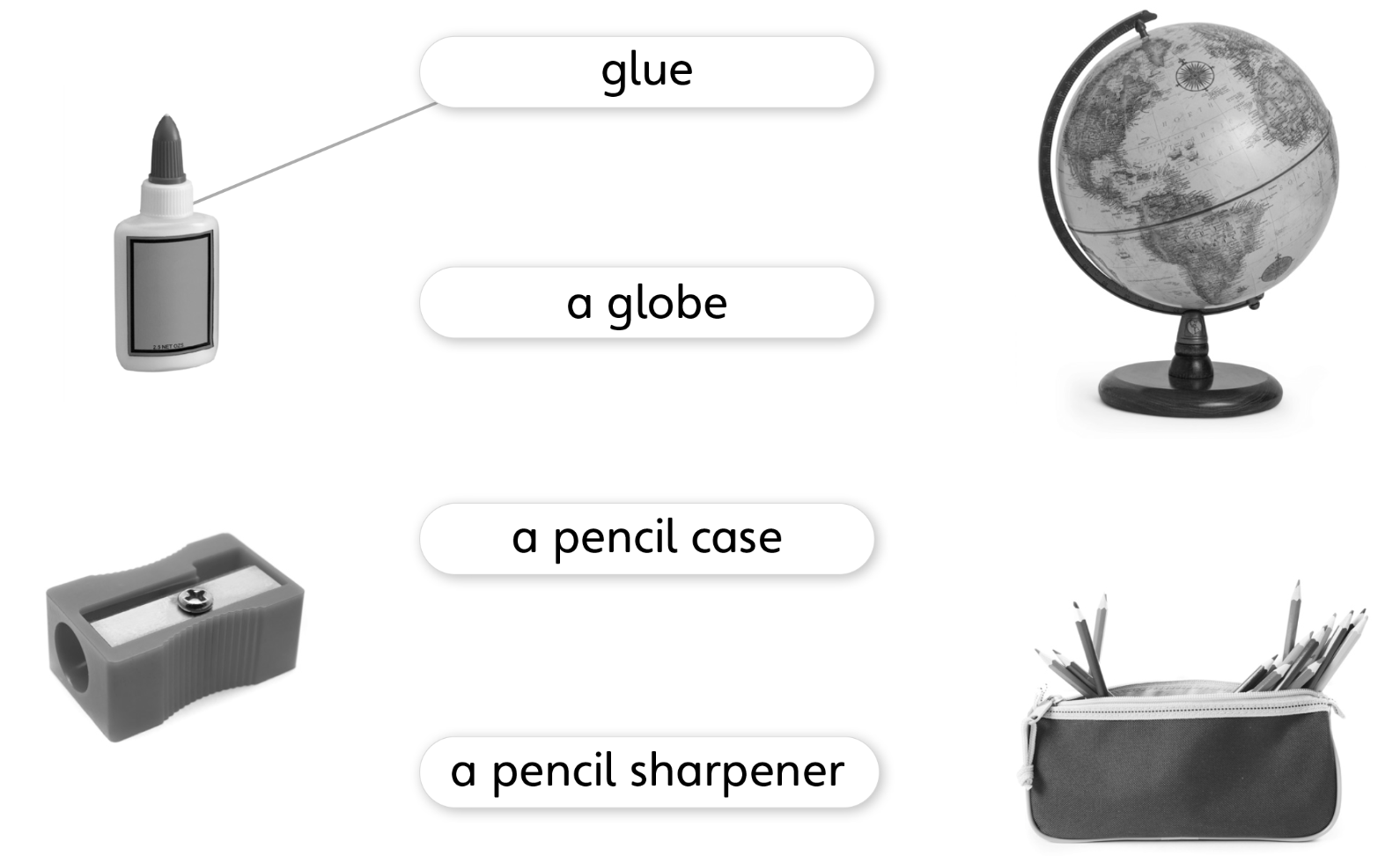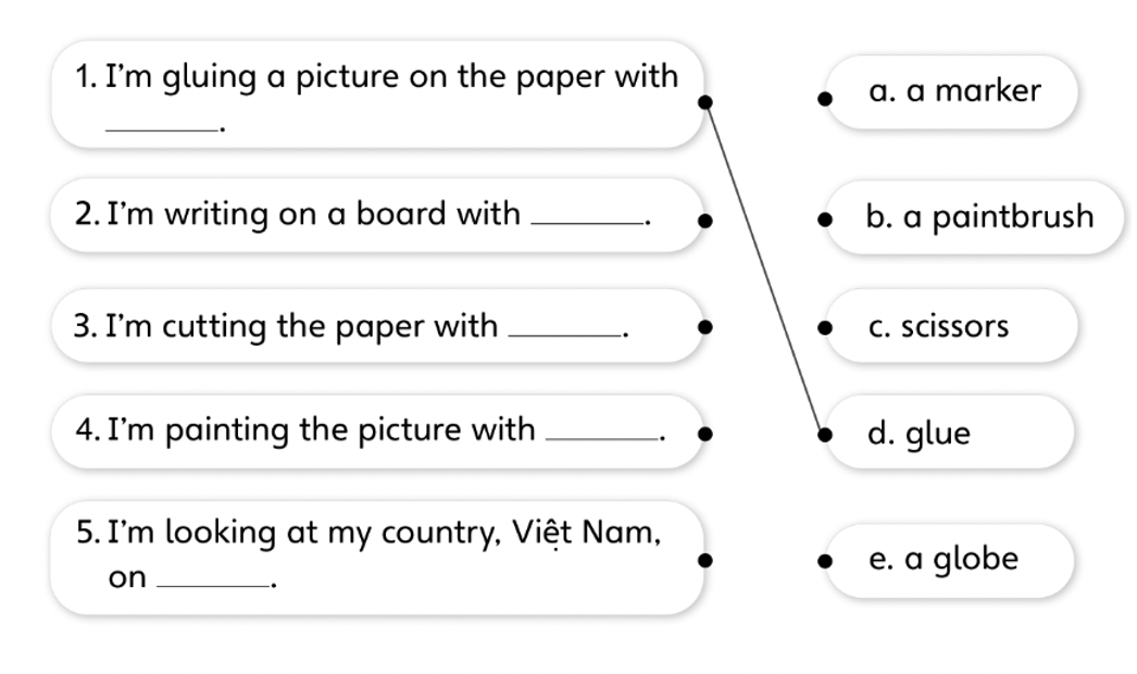 4. Jack can glue pictures on the paper. (Jack có thể dán các hình ảnh lên giấy.)