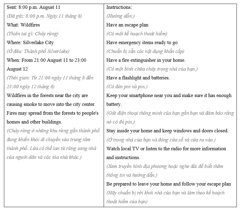 (Viết một thông báo về một thảm họa ở nơi bạn sống. Viết 80 đến 100 từ.)