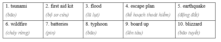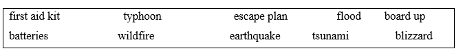 You will hear a boy talking to his classmate about a disaster. Listen and complete questions 1-5. You will hear the conversation twice. Look and read. Choose the correct answer (A, B or C). Fill in the blanks with the words from the box.