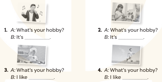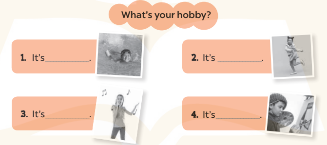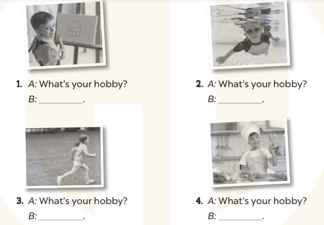 Complete and say. Read and match. Look, complete and read. Make sentences. Ask and answer. Look and write. Write abot your hobbies.