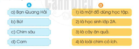 Câu 1: Ghép từ ngữ ở cột A với cột B để tạo thành câu: