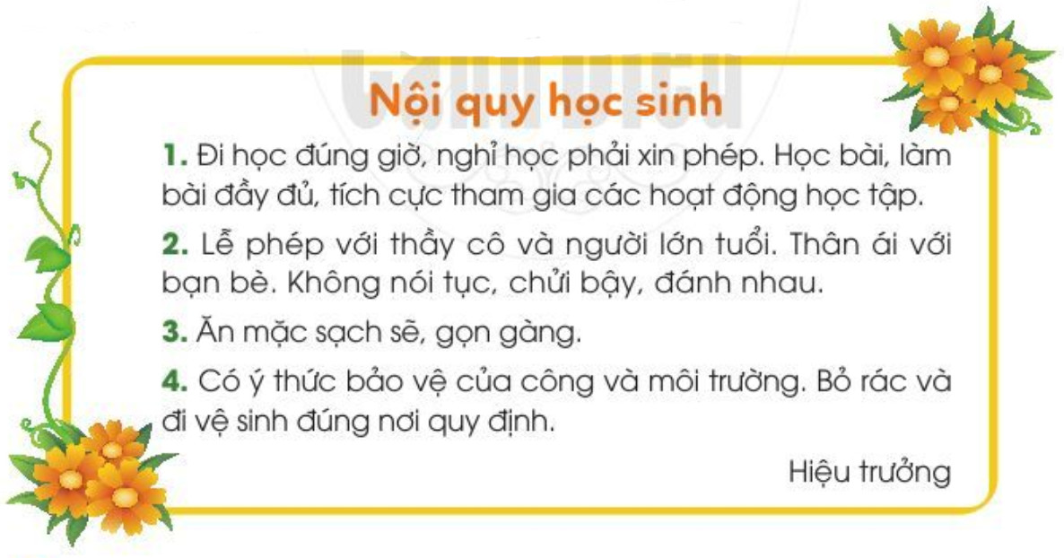 Câu 2: Đọc bản nội quy học sinh dưới đây: