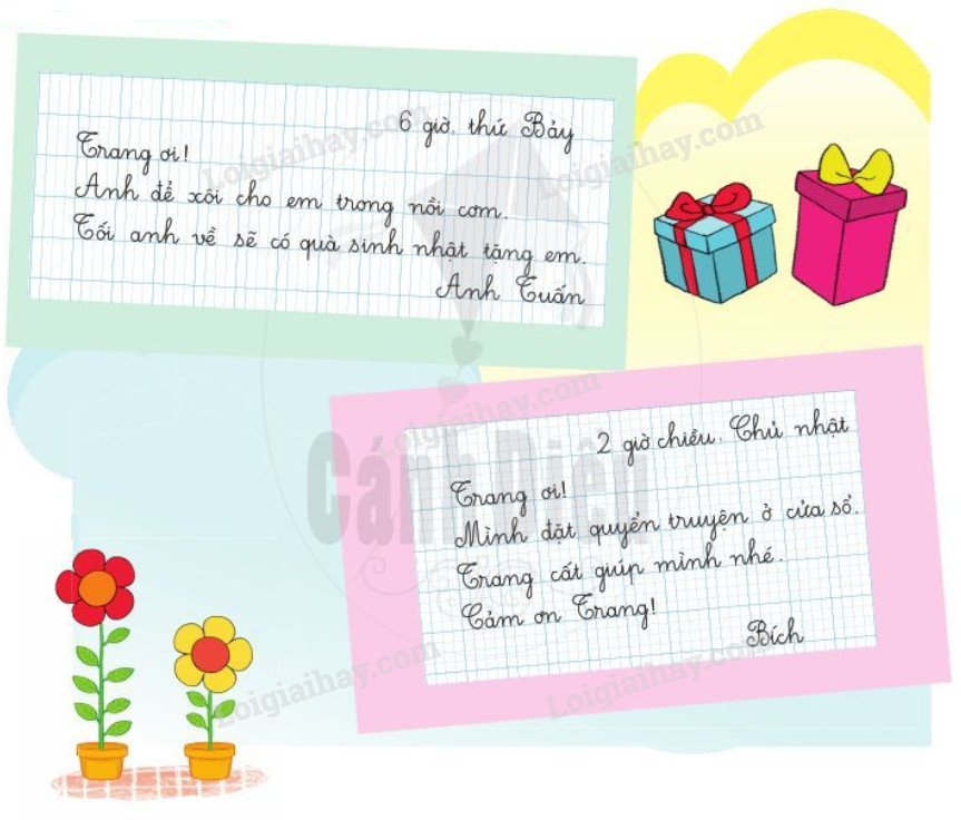 a. Anh Tuấn và Bích nhắn tin cho Trang. Họ nhắn tin cho Trang bằng cách viết lại lời nhắn trên giấy.