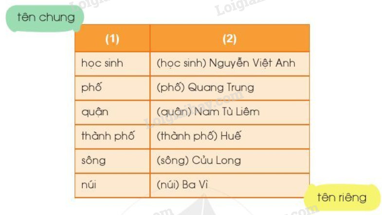 Các từ ở nhóm (1) là danh từ chung nên viết thường, các từ ở nhóm (2) có chứa tên riêng (người, địa điểm) nên cần viết hoa chữ cái đầu tiên của những tiếng tạo thành tên riêng đó.