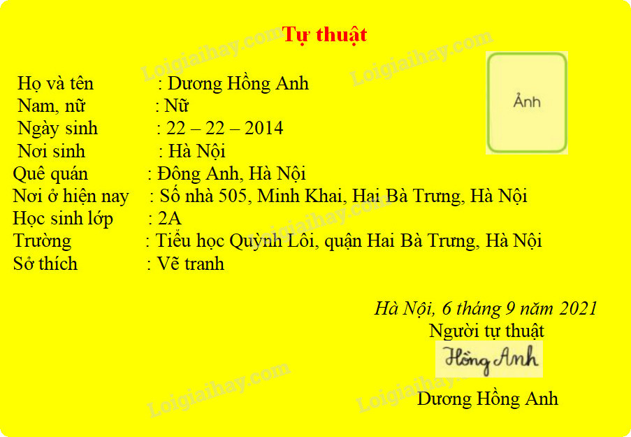 Em làm theo mẫu tự thuật của bạn Dương Hồng Anh