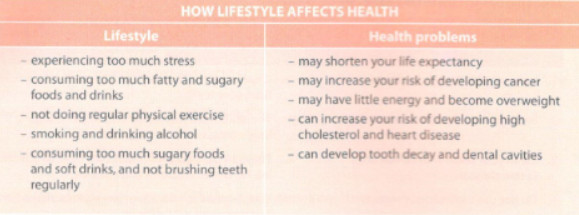 Task 1. Use the information in the table to write sentences about how lifestyle affects health.