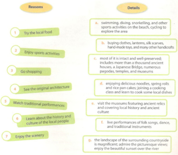 Task 1: Match the reasons why visitors want to visit Hoi An Ancient Town with the details to support them.
