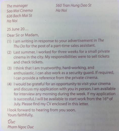 I am writing in response to your advertisement in last Sunday’s Viet Nam News for the post of a part-time tour guide.