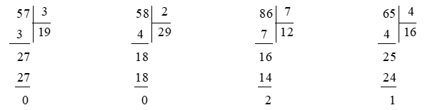 Thực hiện chia từng chữ số của số bị chia cho số chia lần lượt từ trái sang phải.
