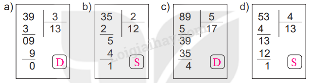 Kiểm tra các phép chia rồi điền Đ, S thích hợp vào ô trống.