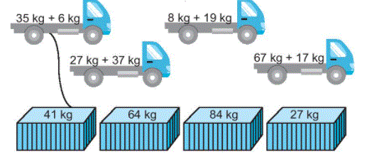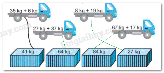 Ta có 27 kg + 37 kg = 64 kg                       8 kg + 19 kg = 27 kg