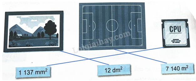 Quan sát tranh rồi chọn số đo diện tích phù hợp với mỗi bề mặt