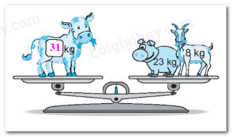 – Quan sát tranh vẽ ta thấy hai đĩa cân thăng bằng nên cân nặng của con vật 2 bên đĩa cân bằng nhau.