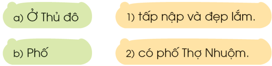 Ở Thủ đô có phố Thợ Nhuộm. Bà em kẻ, xưa kia, phố có nghề nhuộm. Phố tấp nập và đẹp lắm. Bà hứa đưa em đi thăm phố. Bà sẽ kể cho em nghe thêm về nghề nhuộm.