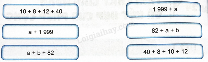 Áp dụng tính chất giao hoán để nối các biểu thức có giá trị bằng nhau.