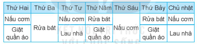 Rửa bát: 3 ngày                                               Lau nhà: 2 ngày