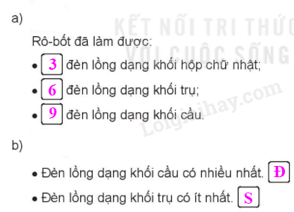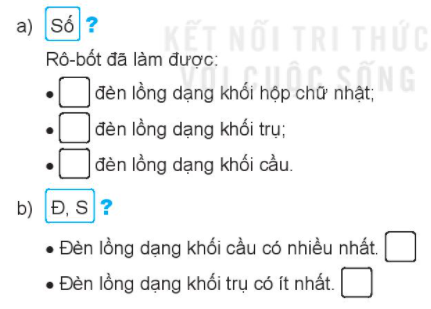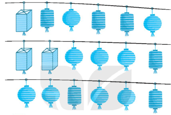Quan sát hình vẽ, đếm số đèn lồng dạng khối hộp chữ nhật, khối trụ và khối cầu và điền vào ô trống cho thích hợp.