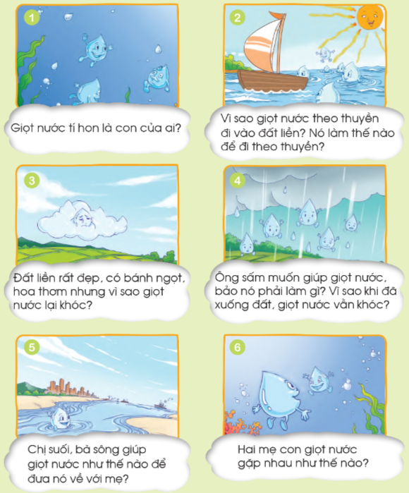Cuộc phiêu lưu của giọt nước tí hon. Giọt nước tí hon là con của mẹ biển xanh bao la. Nó được mẹ cưng chiều lắm.