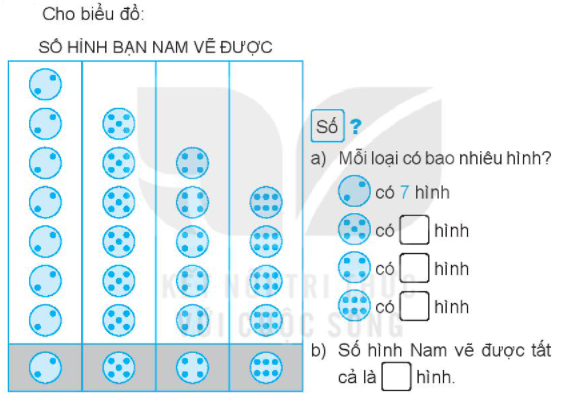 a) Quan sát biểu đồ, em đếm số lượng mỗi hình rồi viết số thích hợp vào chỗ chấm.