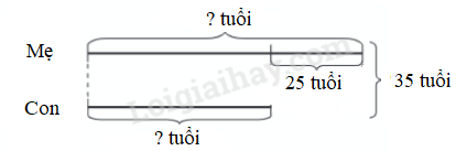 Năm nay tổng số tuổi của hai mẹ con là 35 tuổi. Hỏi năm nay mẹ bao nhiêu tuổi, con bao nhiêu tuổi? Biết mẹ hơn con 25 tuổi.