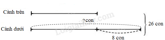 Có 26 con chim đậu trên hai cành cây. Số chim đậu ở cành trên ít hơn số chim đậu ở cành dưới là 8 con. Hỏi có bao nhiêu con chim đậu ở cành dưới?