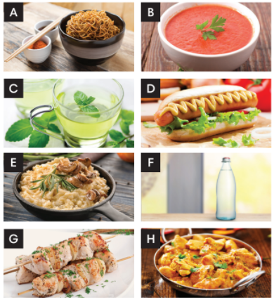 (Sắp xếp các từ để tạo thành các cụm từ để gọi đồ ăn và thức uống.)