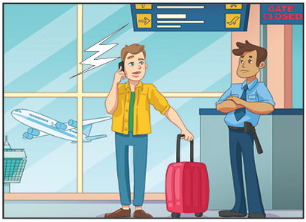 Guard: Did your plane take off on time?